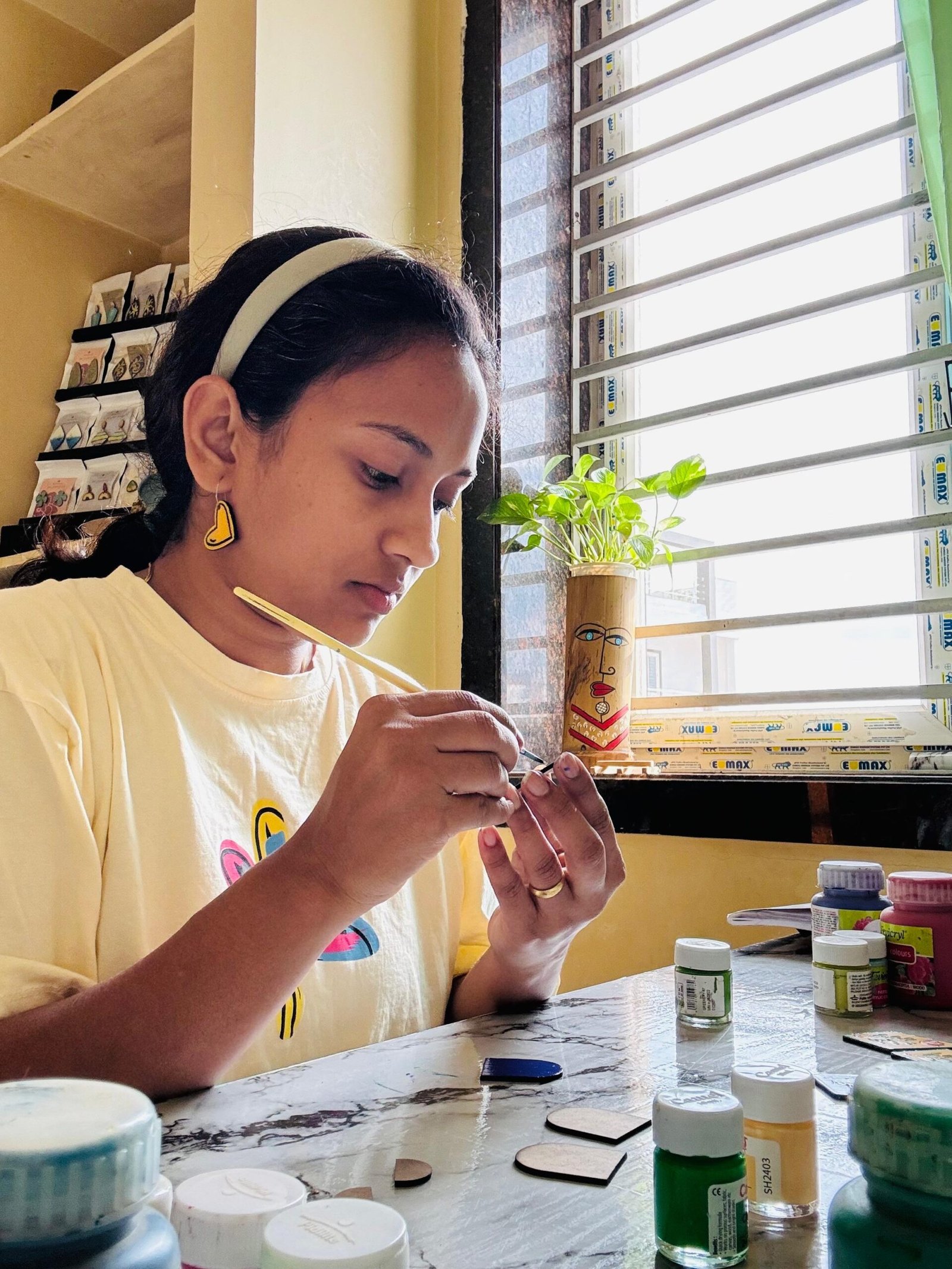 Every piece I create is hand-painted on wood, inspired by nature, traditional art, and everyday beauty. I believe jewellery should be more than an accessory — it should tell a story, express personality, and feel personal.